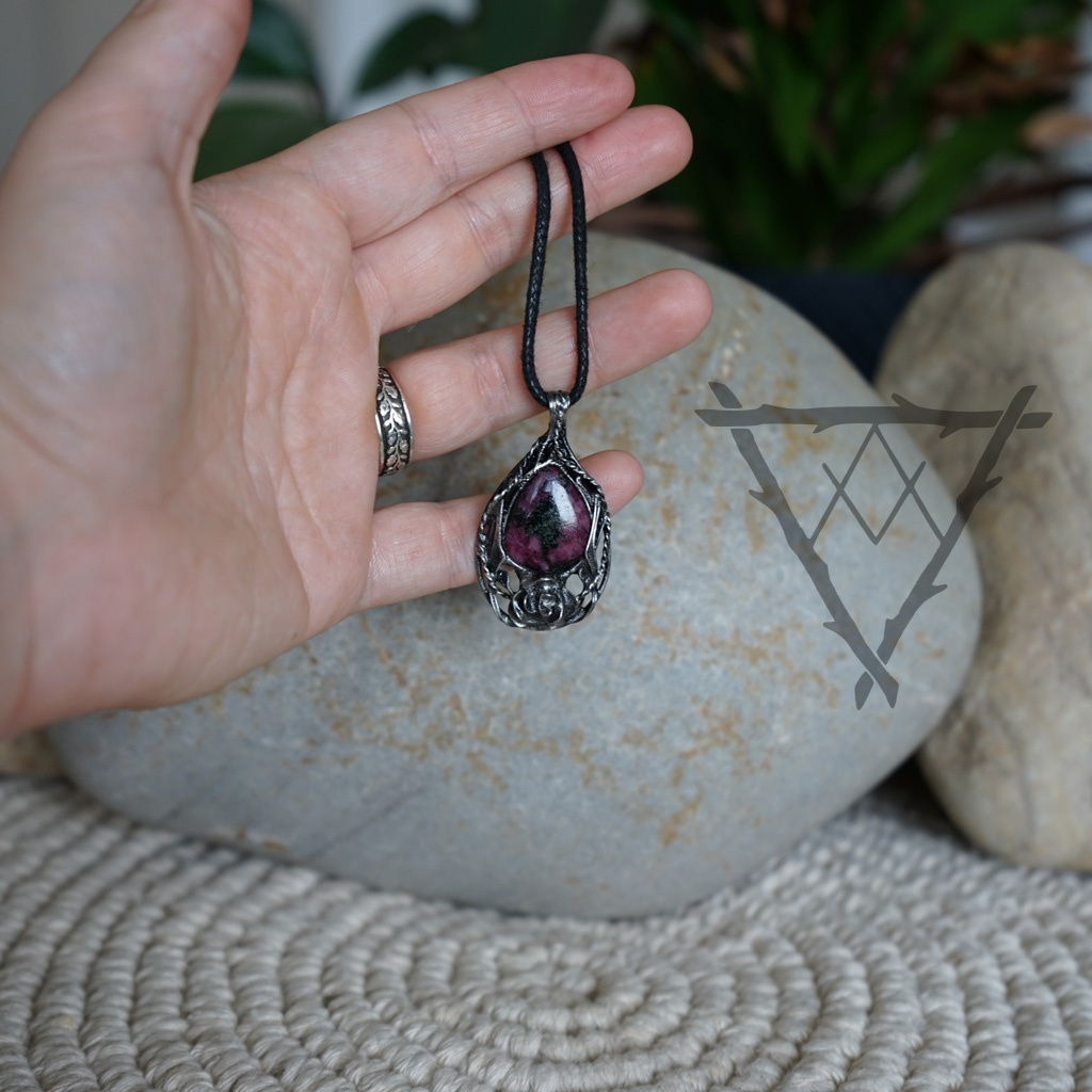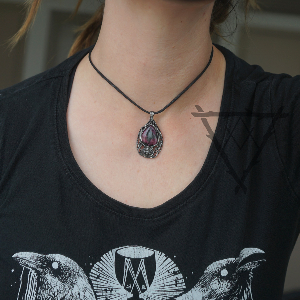 Konstrukce šperku je ručně vyrobena z chirurgické oceli a spojovacím materiálem je slitina cínu a stříbra. Šperk se poté ošetřuje podobně jako stříbro - jednou za čas přeleštíme. Čím více se šperk nosí, tím lépe, leští se sám o oblečení, kůži nositele atd. Kov je stálý a neobsahuje nikl ani těžké kovy. Šperky lze nosit neustále i do vody, poté je však dobré je usušit a častěji ošetřovat. Šperk je zavěšen na splétané, bavlněné šňůrce a zajištěn zvětšovacím uzlem.