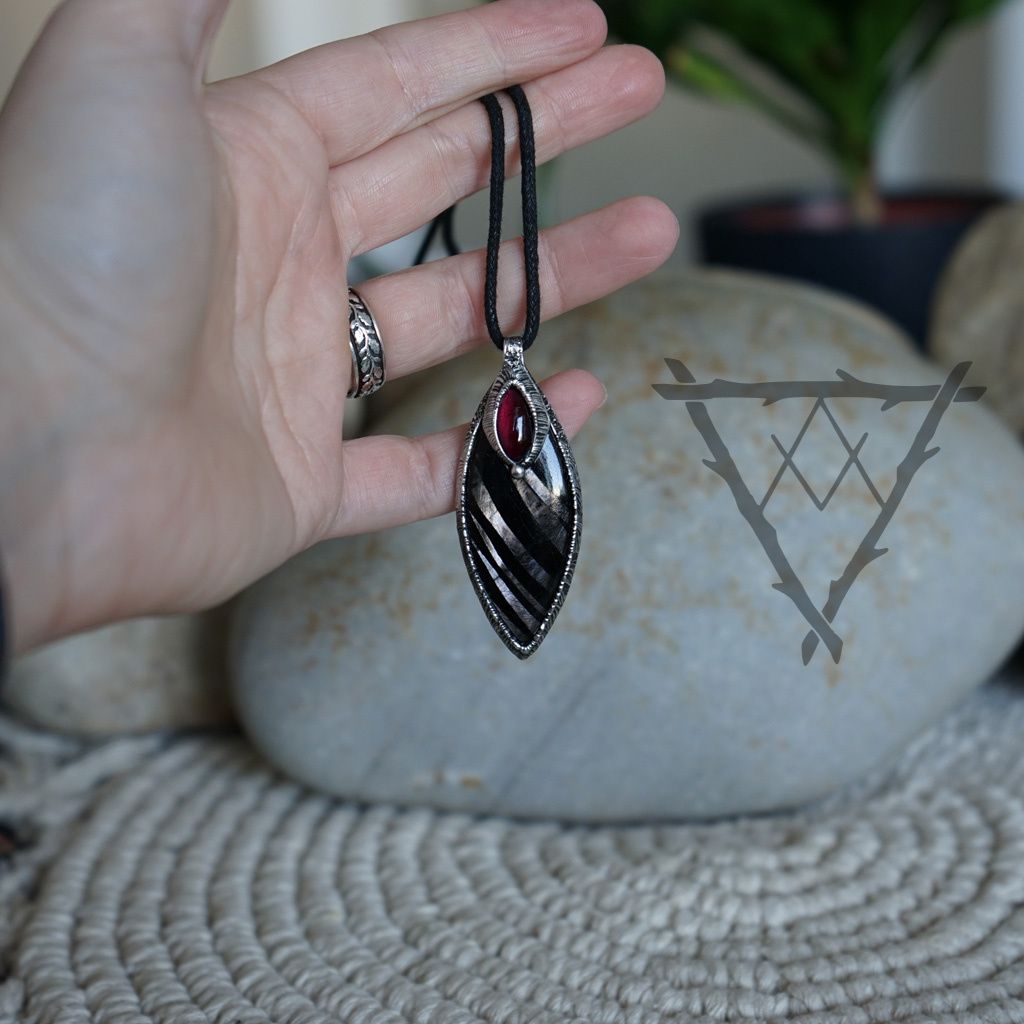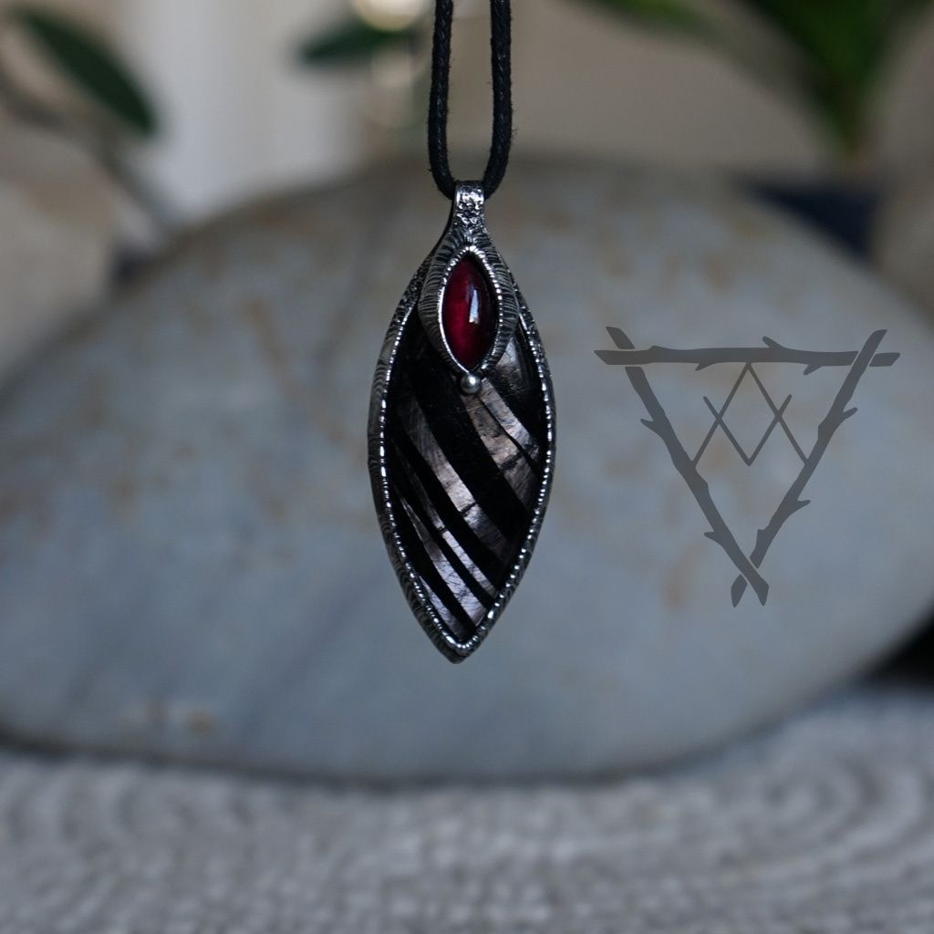 Přívěsek s nádherným Hyperstenem a Granátem vínové barvy.