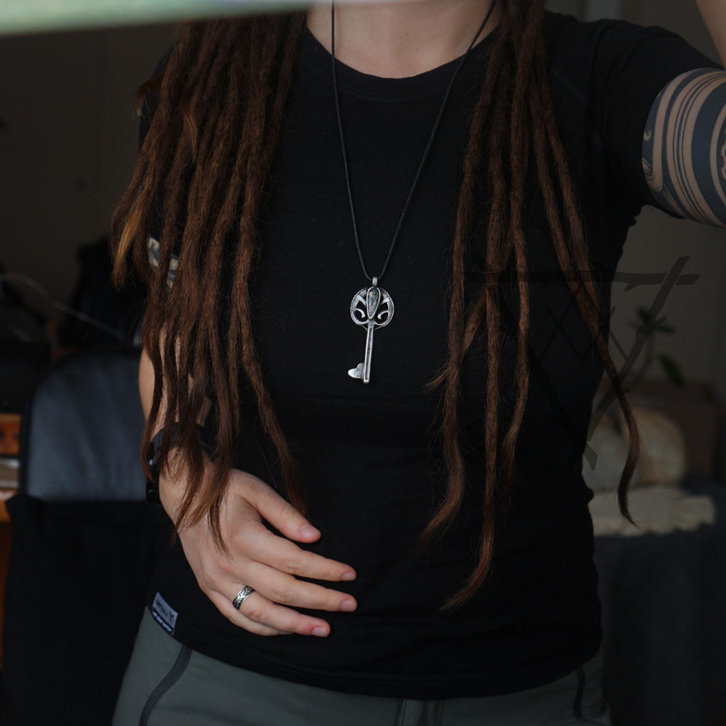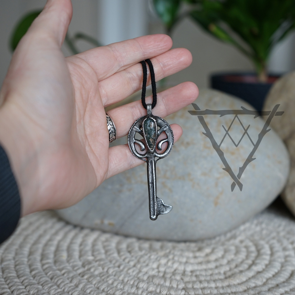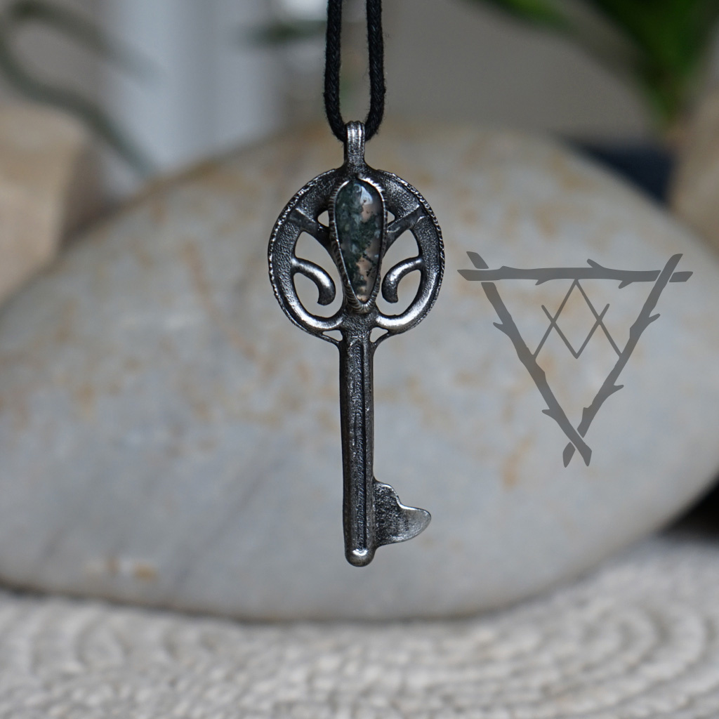 Šperk ve tvaru klíče s mechovým achátem propojuje symboliku otevření nových cest s hlubokým ukotvením v přírodě. Klíč zde představuje možnost vstoupit do nových životních etap, odemknout skryté potenciály a nalézt odpovědi, které čekají pod povrchem. Mechový achát je kamenem růstu, rovnováhy a spojení se zemí, jehož kresba připomíná tichý les a přirozený koloběh života. Pomáhá zpomalit, zklidnit mysl a znovu se naladit na vlastní přirozenost. V jeho energii je ukrytá jemná síla obnovy a trpělivého vývoje. Společně s motivem klíče vytváří šperk harmonický celek, který symbolizuje otevírání cest v souladu s vlastním rytmem. Může být průvodcem při hledání stability i odvahy vykročit novým směrem. Připomíná, že každé dveře mají svůj čas – a že skutečné klíče vyrůstají z klidu a propojení s tím, co je přirozené.