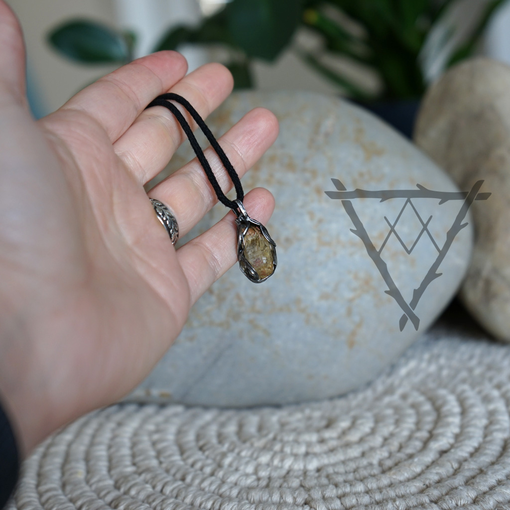 Citrín pochází z Brazílie a je to žlutá až žlutooranžová odrůda křemene (SiO₂), jehož barvu způsobují stopy železa. Citrín v sobě uchovává sluneční energii a představuje mimořádně blahodárně působící krystal. Svému majiteli předává teplo a energii, zvyšuje tvůrčí schopnosti a jako jeden z mála kamenů nepotřebuje čistit. Pohlcuje a proměňuje negativní energie v pozitivní. Citrín je šťastný a štědrý kámen a působí tak i na svého nositele v tom nejlepším smyslu. Velice dobře slouží k urovnávání vztahů v rodině nebo zaměstnání.