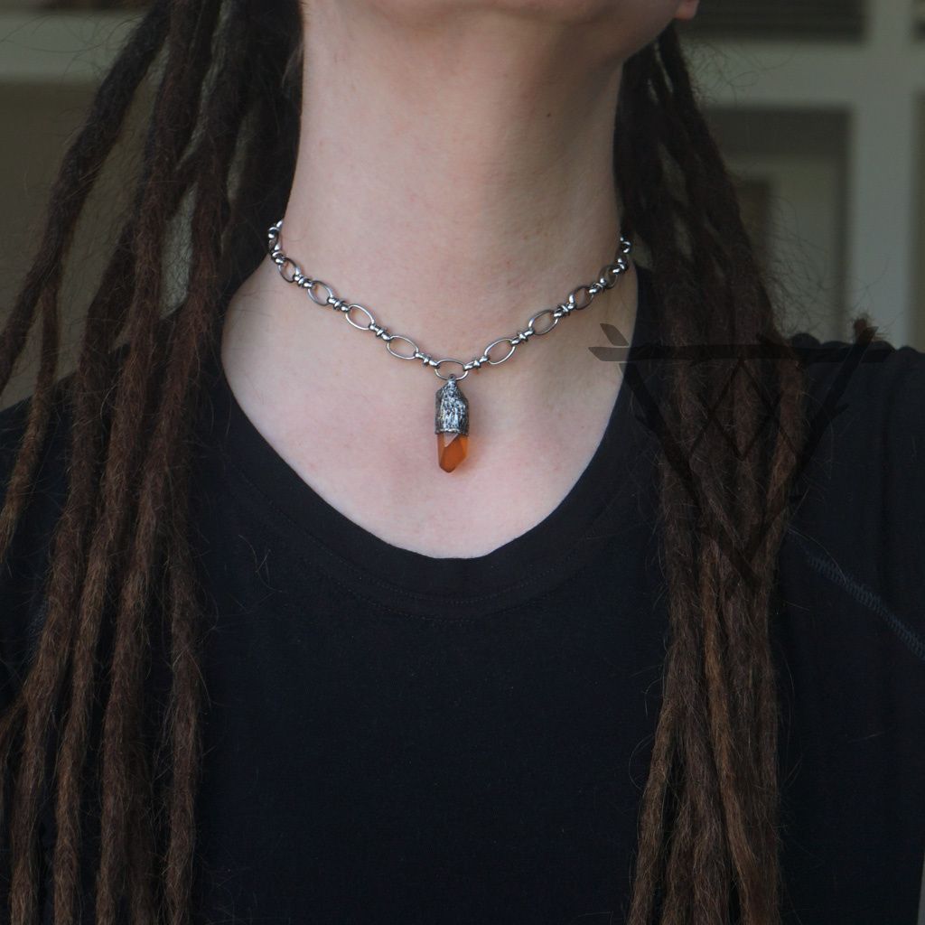 Choker se surovým krystalem Tangerinského Křišťálu.