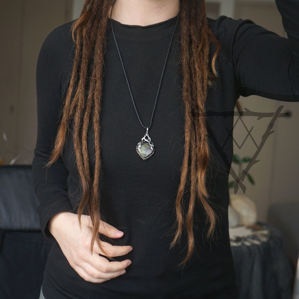 Konstrukce šperku je ručně vyrobena z chirurgické oceli a spojovacím materiálem je slitina cínu a stříbra. Šperk se poté ošetřuje podobně jako stříbro - jednou za čas přeleštíme. Čím více se šperk nosí, tím lépe, leští se sám o oblečení, kůži nositele atd. Kov je stálý a neobsahuje nikl ani těžké kovy. Šperky lze nosit neustále i do vody, poté je však dobré je usušit a častěji ošetřovat. Šperk je zavěšen na splétané, bavlněné šňůrce a zajištěn zvětšovacím uzlem.