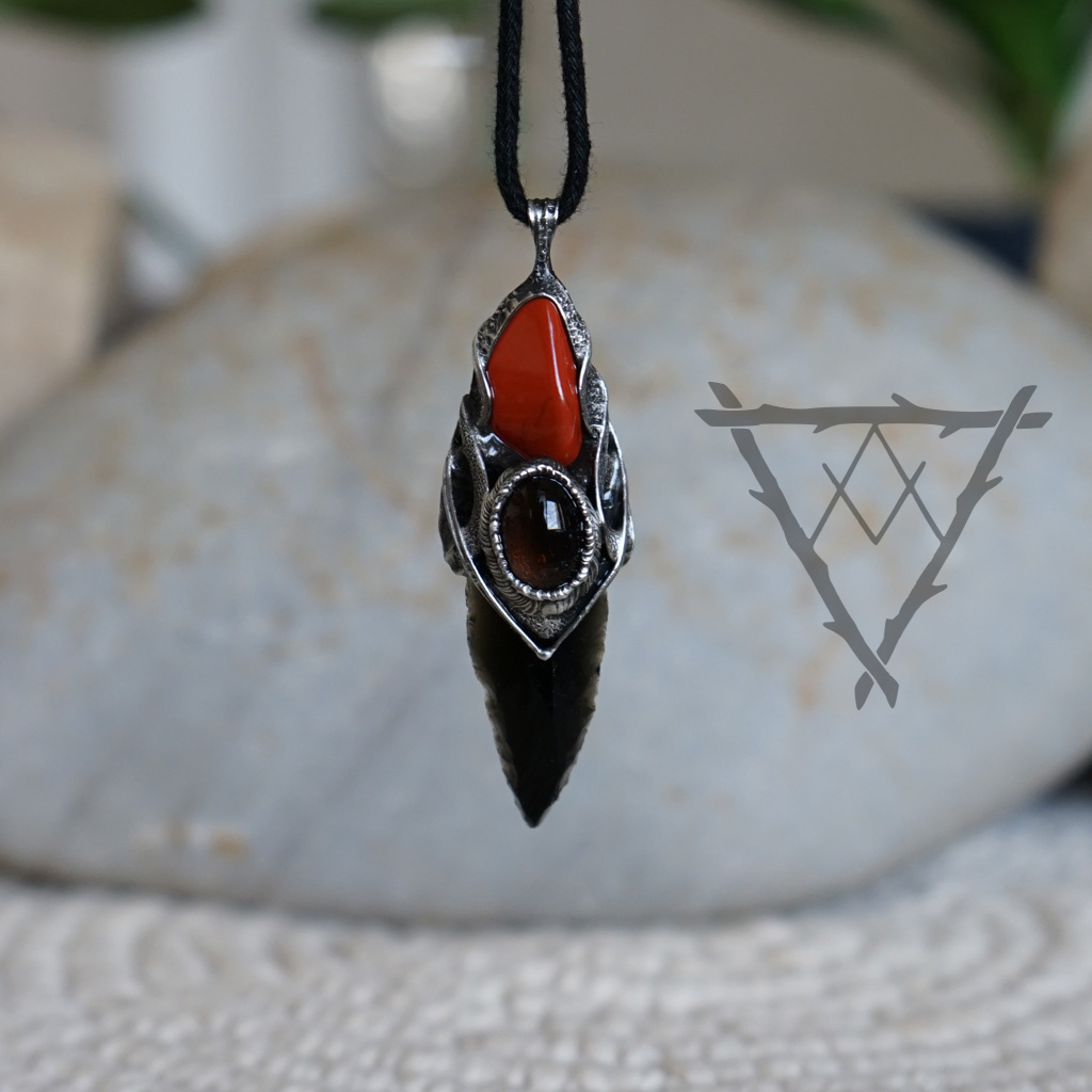 Spojení červeného jaspisu, záhnědy a obsidiánu vytváří silnou, hluboce uzemňující kombinaci kamenů s ochranitelskou energií. Červený jaspis symbolizuje životní sílu, odvahu a stabilitu, podporuje vytrvalost a schopnost stát pevně za svými rozhodnutími. Záhněda přináší klidnou, zralou energii transformace, pomáhá rozpouštět staré strachy a přijímat změny s pokorou i důvěrou. Obsidián, sopečné sklo zrozené z ohně a rychlého ochlazení lávy, je kamenem pravdy – odhaluje skryté vrstvy duše a chrání před negativními vlivy.
