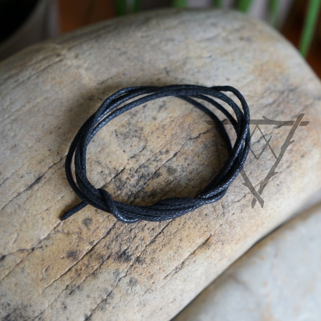 Cotton, braided string with a width of 1.5 mm. It is 79 cm long and both ends are sealed. I use this string to hang jewelry and it can be tied into a shortening knot. Ideal for stock when the older string wears out, or for your other jewelry.