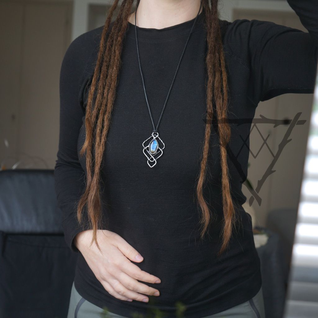 A striking, large piece of jewelry with Labradorite.