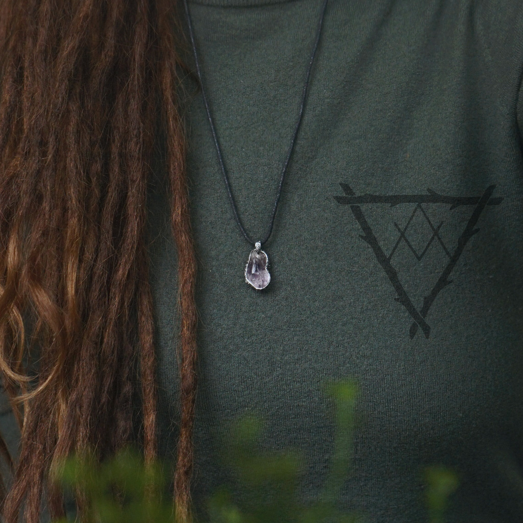 Konstrukce šperku je ručně vyrobena z chirurgické oceli a spojovacím materiálem je slitina cínu a stříbra. Šperk se poté ošetřuje podobně jako stříbro - jednou za čas přeleštíme. Čím více se šperk nosí, tím lépe, leští se sám o oblečení, kůži nositele atd. Kov je stálý a neobsahuje nikl ani těžké kovy. Šperky lze nosit neustále i do vody, poté je však dobré je usušit a častěji ošetřovat. Šperk je zavěšen na splétané, bavlněné šňůrce a zajištěn zvětšovacím uzlem.