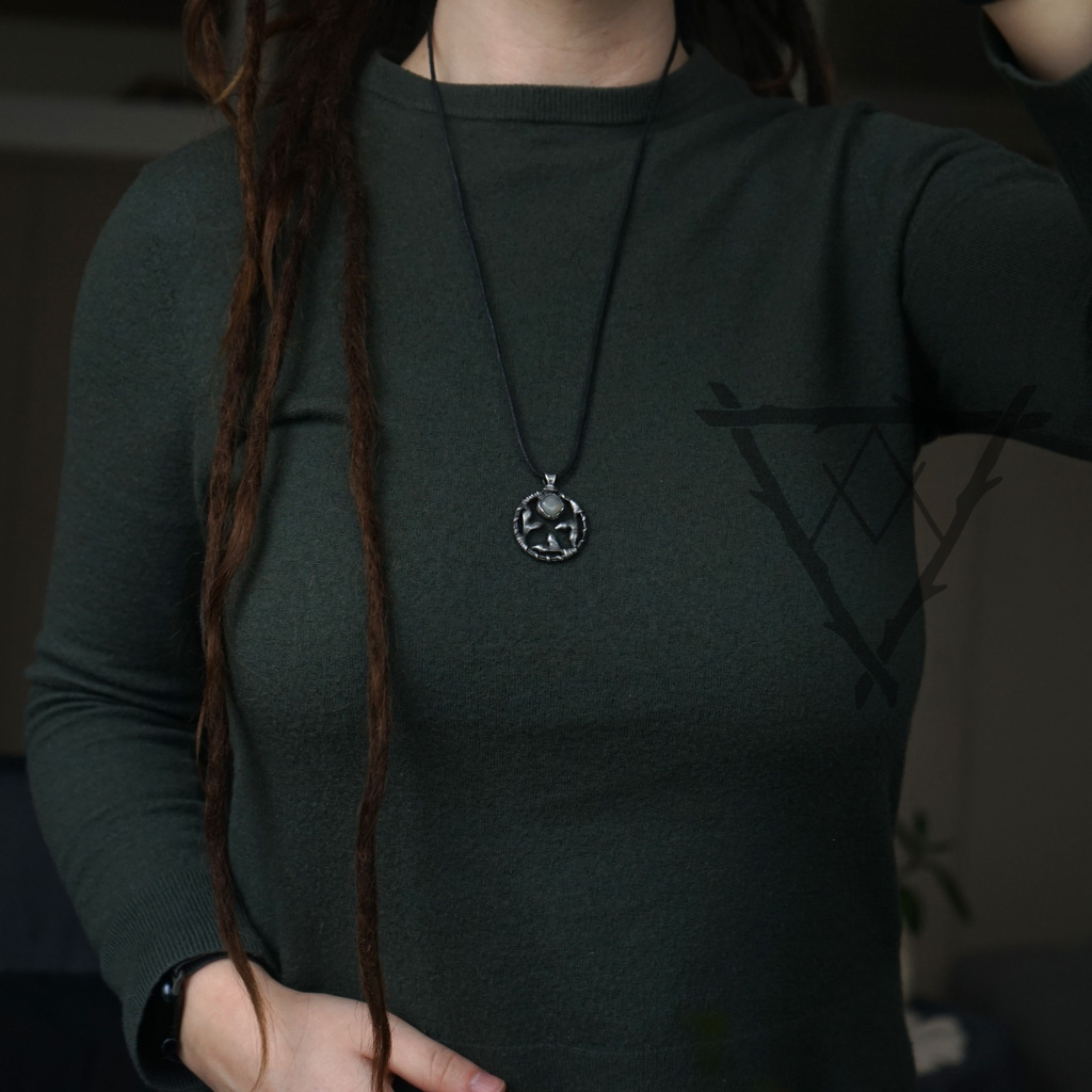 Konstrukce šperku je ručně vyrobena z chirurgické oceli a spojovacím materiálem je slitina cínu a stříbra. Šperk se poté ošetřuje podobně jako stříbro - jednou za čas přeleštíme. Čím více se šperk nosí, tím lépe, leští se sám o oblečení, kůži nositele atd. Kov je stálý a neobsahuje nikl ani těžké kovy. Šperky lze nosit neustále i do vody, poté je však dobré je usušit a častěji ošetřovat. Šperk je zavěšen na splétané, bavlněné šňůrce a zajištěn zvětšovacím uzlem.
