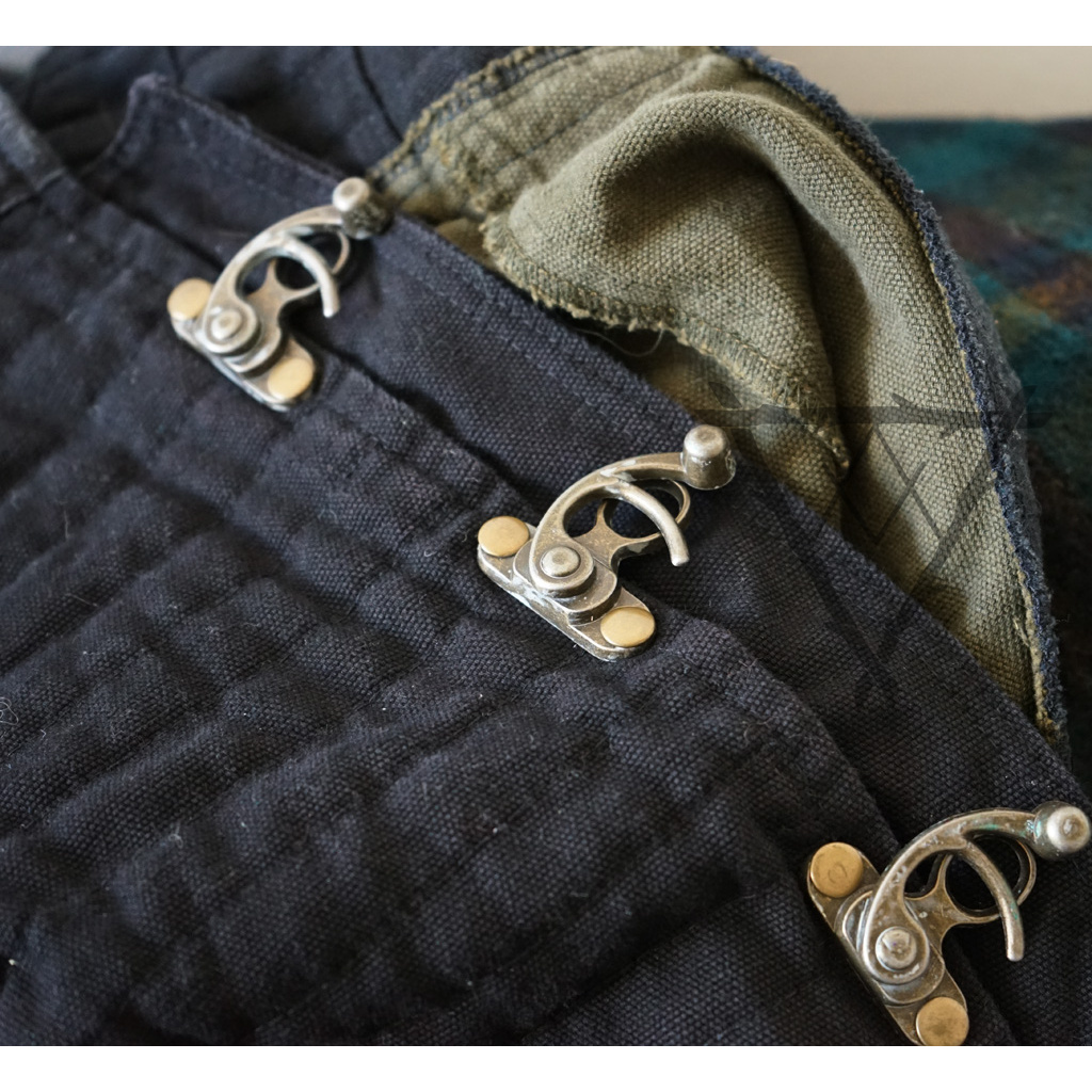 Na zádech je šněrování a vepředu mosazné zapínací háčky ala steampunk.