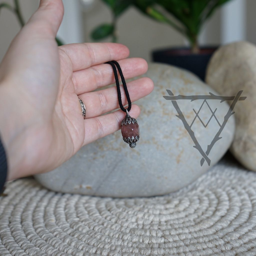 Přívěsek s broušeným jahodovým Křemenem.