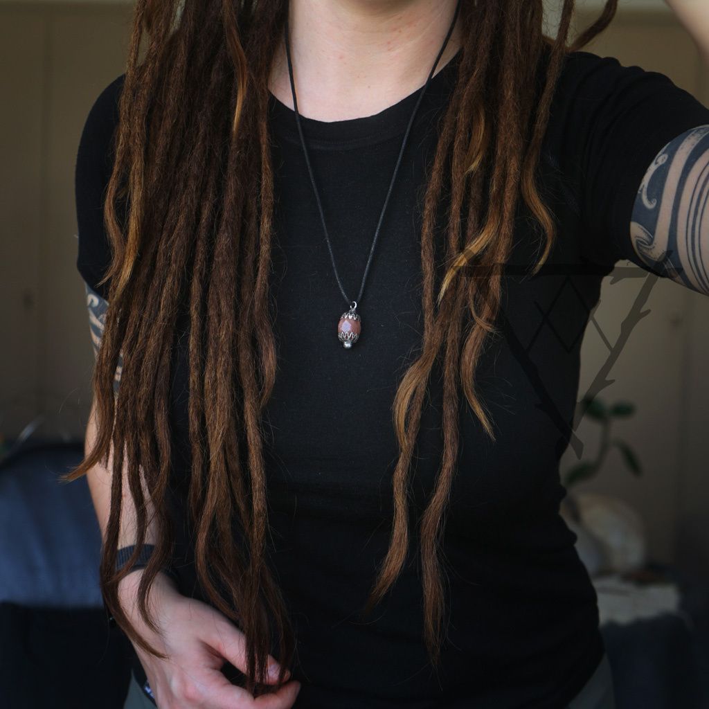 Konstrukce šperku je ručně vyrobena z chirurgické oceli a spojovacím materiálem je slitina cínu a stříbra. Šperk se poté ošetřuje podobně jako stříbro - jednou za čas přeleštíme. Čím více se šperk nosí, tím lépe, leští se sám o oblečení, kůži nositele atd. Kov je stálý a neobsahuje nikl ani těžké kovy. Šperky lze nosit neustále i do vody, poté je však dobré je usušit a častěji ošetřovat. Šperk je zavěšen na splétané, bavlněné šňůrce a zajištěn zvětšovacím uzlem.