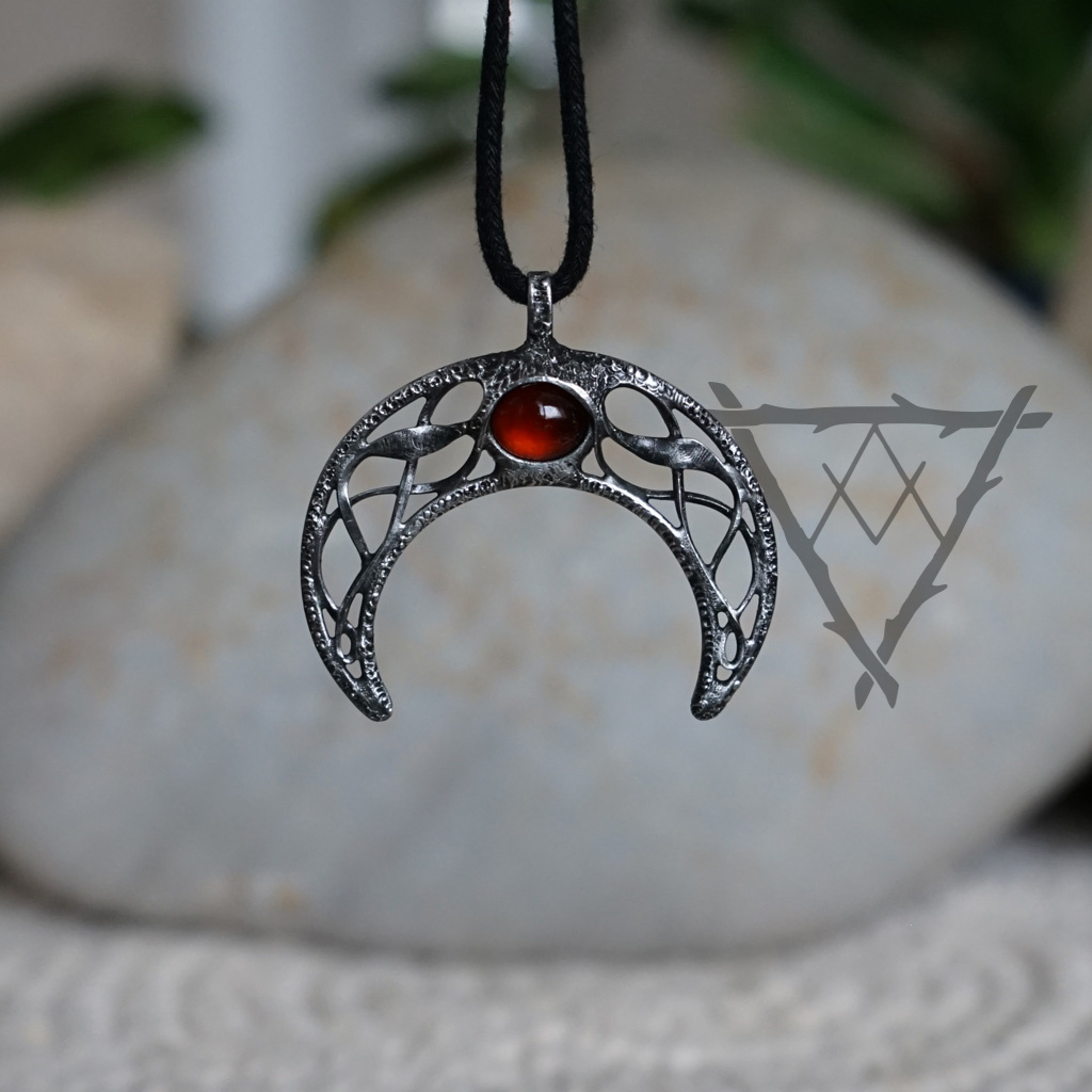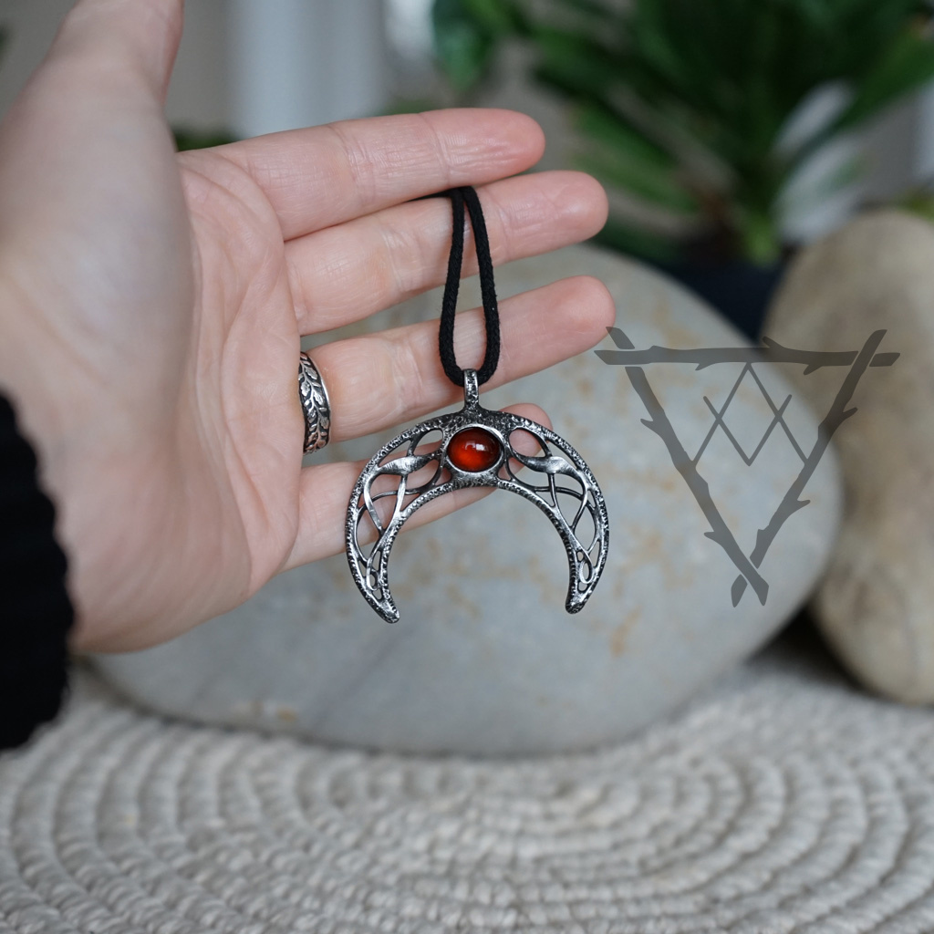 Luna je od pradávna symbolem ženské energie, intuice a proměnlivosti životních cyklů. Představuje tiché vnitřní světlo, které nás vede i ve chvílích nejistoty. Granát v hluboké barvě krve je kamenem životní síly, odvahy a zakořenění v těle i realitě. V ezoterickém pojetí posiluje vášeň, odhodlání a schopnost stát si za svým. Spojení luny a granátu vytváří rovnováhu mezi intuicí a silnou, žitou energií. Tento šperk podporuje vědomé prožívání emocí bez jejich potlačování. Připomíná, že citlivost a síla nejsou protiklady, ale dvě strany téže mince. Je vhodný pro ty, kdo chtějí naslouchat svému vnitřnímu hlasu a zároveň zůstat pevně zakotveni v sobě. Silný, ženský šperk.