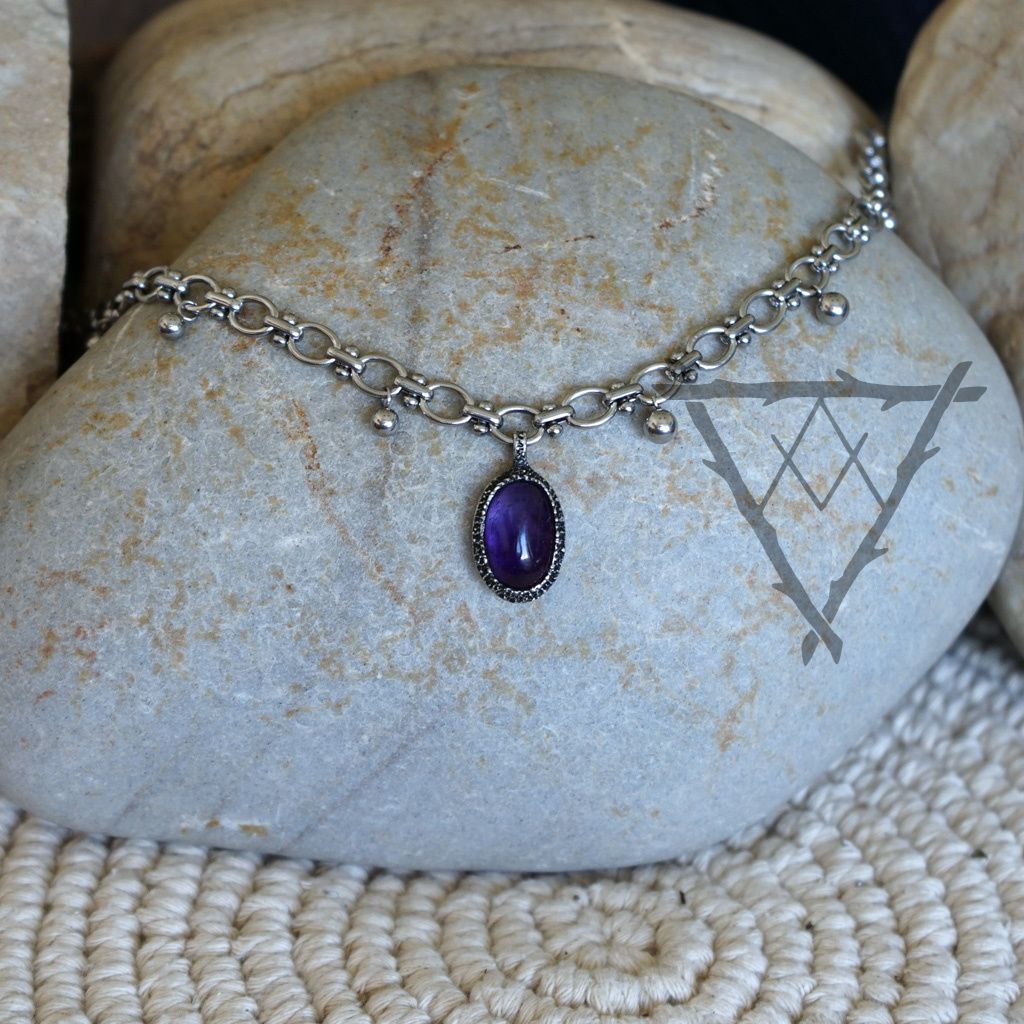 Ametyst je nám znám už od starověku a provází lidstvo v podobě šperků, pečetí, obětin, sošek a drobných předmětů. Název může pocházet z řeckého slova amethystos = neopojivý [řec. methé = opilost], ovšem možné je i to, že kořen slova je odvozen od barvy kamene podobné barvě vína [řec. methy]. Indové nazývají Ametyst Katajílá podle barvy ovoce, které připomíná barvu Ametystu.je mimořádně mocný kámen s ohromnou ochrannou sílou, má vysoké spirituální vibrace. Má silnou léčivou a očistnou moc, zahání nespavost a noční můry, vyvolává klidný spánek a příjemné ozdravující sny. Je kamenem klidu, zahání stres a negativní emoce, tiší strachy, vztek, obavy a zlobu, zvyšuje naděje, zahání pocit viny, zbystřuje mysl, je kamenem pravé, ryzí, emocionální lásky, posiluje věrnost. Napomáhá soustředění, pomáhá přijímat nové myšlenky, dodává rozhodnost, rozvíjí intuici, podporuje proměnu záměrů ve skutečnost. Pomáhá při léčbě alkoholismu a jiných závislostí. Čistí a harmonizuje krční a korunní čakru.