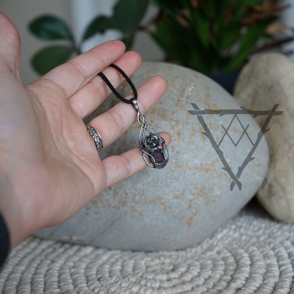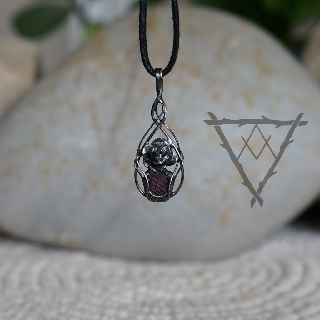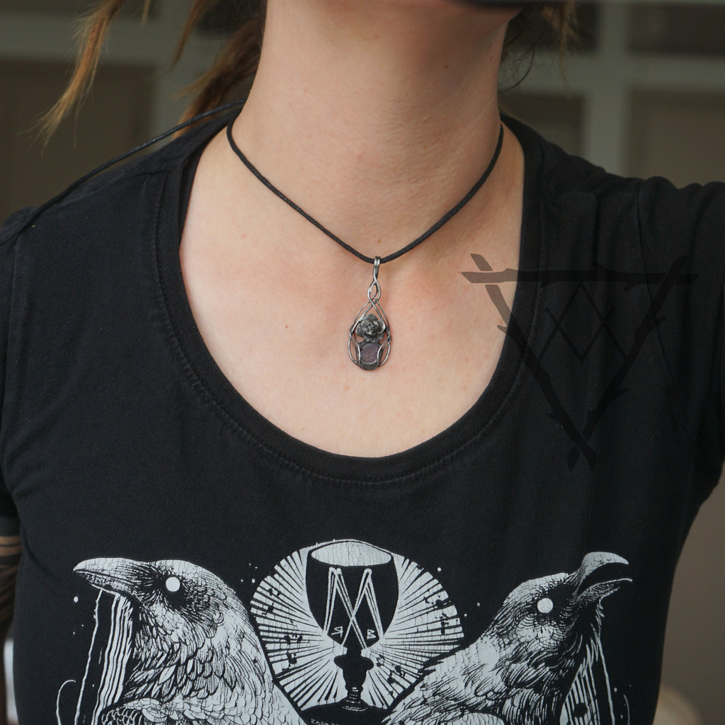 Konstrukce šperku je ručně vyrobena z chirurgické oceli a spojovacím materiálem je slitina cínu a stříbra. Šperk se poté ošetřuje podobně jako stříbro - jednou za čas přeleštíme. Čím více se šperk nosí, tím lépe, leští se sám o oblečení, kůži nositele atd. Kov je stálý a neobsahuje nikl ani těžké kovy. Šperky lze nosit neustále i do vody, poté je však dobré je usušit a častěji ošetřovat. Šperk je zavěšen na splétané, bavlněné šňůrce a zajištěn zvětšovacím uzlem.