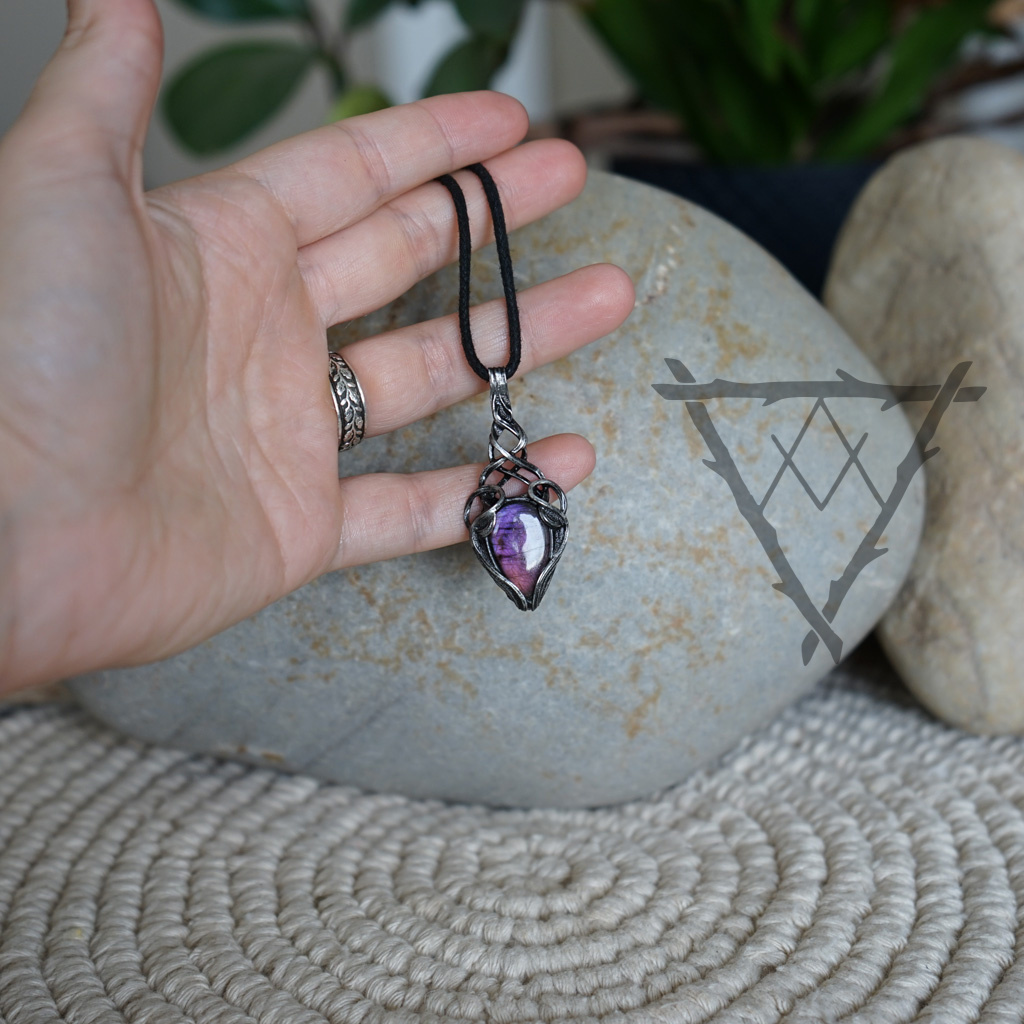 Konstrukce šperku je ručně vyrobena z chirurgické oceli a spojovacím materiálem je slitina cínu a stříbra. Šperk se poté ošetřuje podobně jako stříbro - jednou za čas přeleštíme. Čím více se šperk nosí, tím lépe, leští se sám o oblečení, kůži nositele atd. Kov je stálý a neobsahuje nikl ani těžké kovy. Šperky lze nosit neustále i do vody, poté je však dobré je usušit a častěji ošetřovat. Šperk je zavěšen na splétané, bavlněné šňůrce a zajištěn zvětšovacím uzlem.