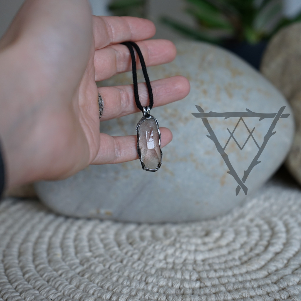 Přívěsek se surovým Křišťálem. Zadní strana kamene je mléčná a tvoří tak velmi zajímavý 3D efekt.