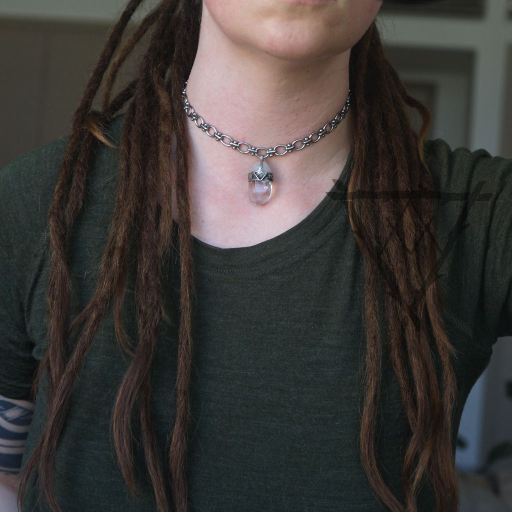 Silnější řetízek z oceli se zapínáním má délku 45 cm a lze ho zapnout jak ke krku, tak i do dekoltu.