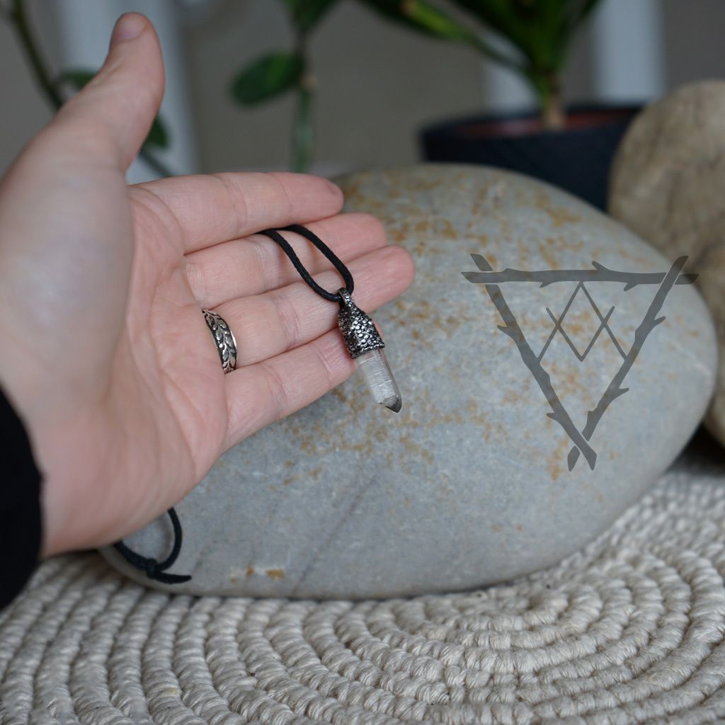 Konstrukce šperku je ručně vyrobena z chirurgické oceli a spojovacím materiálem je slitina cínu a stříbra. Šperk se poté ošetřuje podobně jako stříbro - jednou za čas přeleštíme. Čím více se šperk nosí, tím lépe, leští se sám o oblečení, kůži nositele atd. Kov je stálý a neobsahuje nikl ani těžké kovy. Šperky lze nosit neustále i do vody, poté je však dobré je usušit a častěji ošetřovat. Šperk je zavěšen na splétané, bavlněné šňůrce a zajištěn zvětšovacím uzlem.