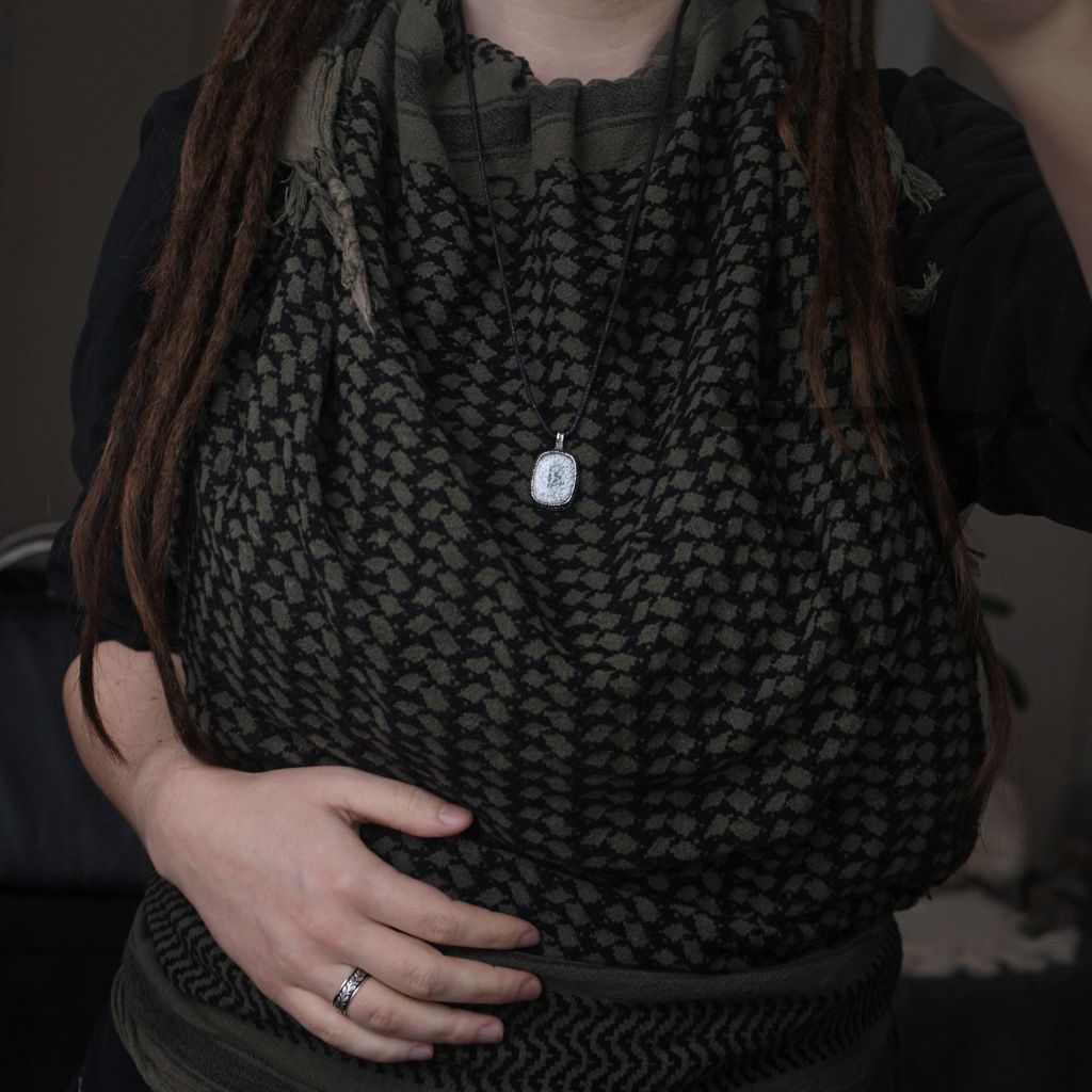Konstrukce šperku je ručně vyrobena z chirurgické oceli a spojovacím materiálem je slitina cínu a stříbra. Šperk se poté ošetřuje podobně jako stříbro - jednou za čas přeleštíme. Čím více se šperk nosí, tím lépe, leští se sám o oblečení, kůži nositele atd. Kov je stálý a neobsahuje nikl ani těžké kovy. Šperky lze nosit neustále i do vody, poté je však dobré je usušit a častěji ošetřovat. Šperk je zavěšen na splétané, bavlněné šňůrce a zajištěn zvětšovacím uzlem.