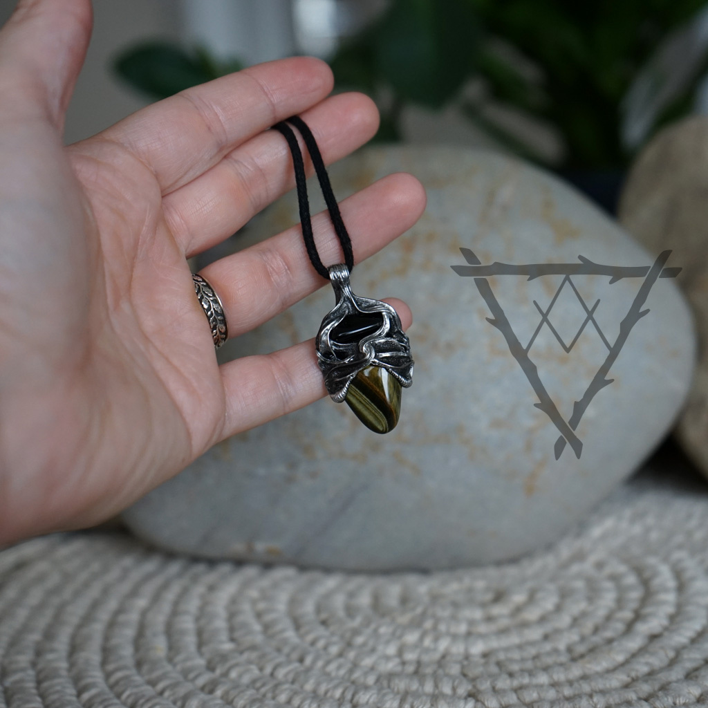 Konstrukce šperku je ručně vyrobena z chirurgické oceli a spojovacím materiálem je slitina cínu a stříbra. Šperk se poté ošetřuje podobně jako stříbro - jednou za čas přeleštíme. Čím více se šperk nosí, tím lépe, leští se sám o oblečení, kůži nositele atd. Kov je stálý a neobsahuje nikl ani těžké kovy. Šperky lze nosit neustále i do vody, poté je však dobré je usušit a častěji ošetřovat. Šperk je zavěšen na splétané, bavlněné šňůrce a zajištěn zvětšovacím uzlem.
