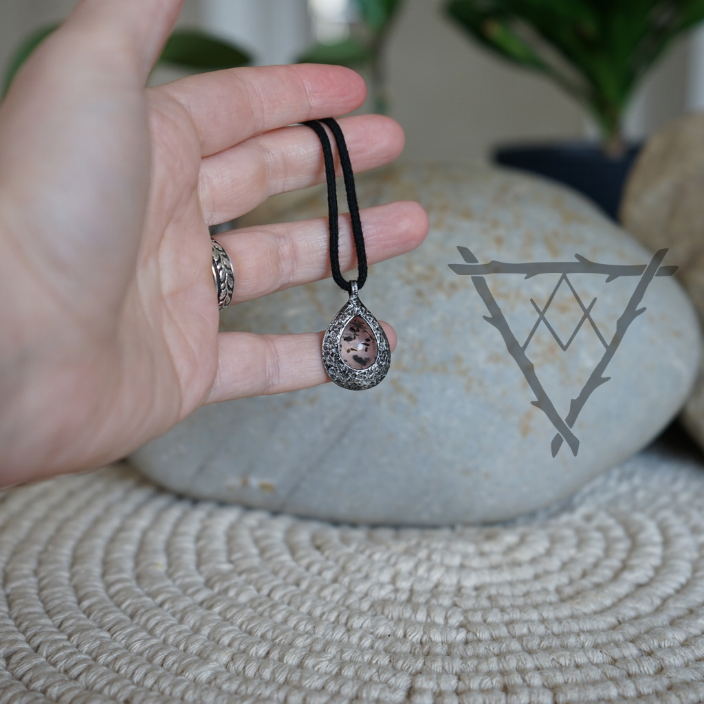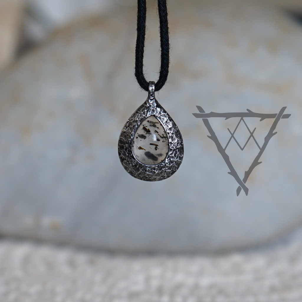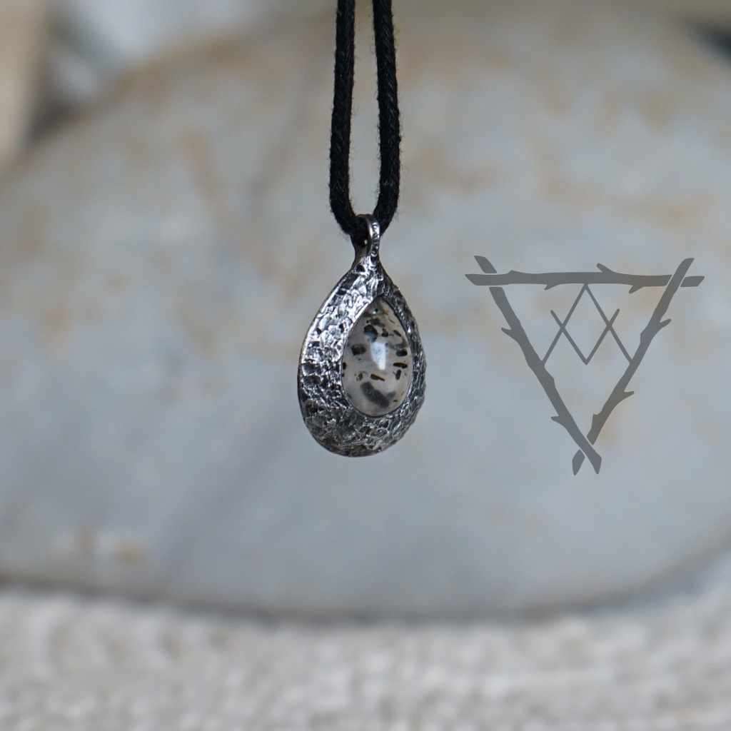 Přívěsek se zvláštním kamenem - Křišťál s vrostlicemi Biotitu.