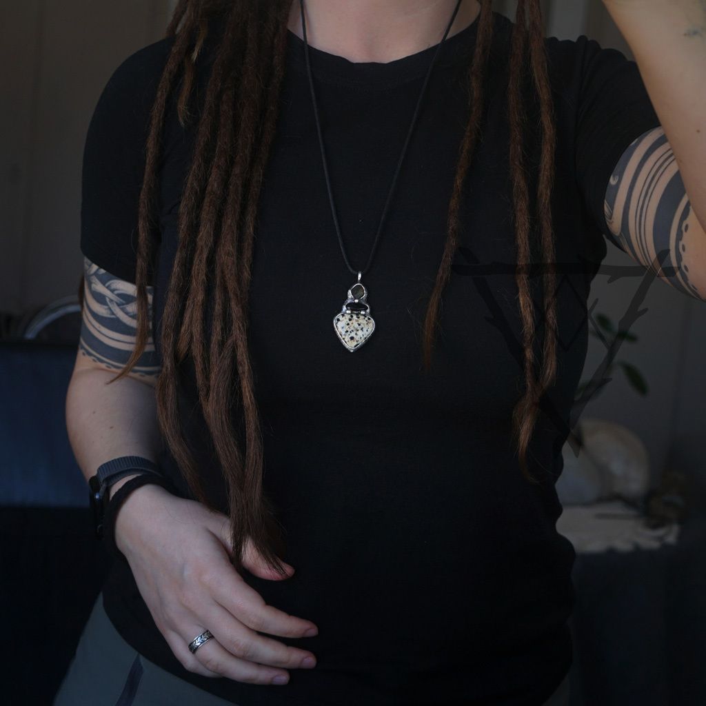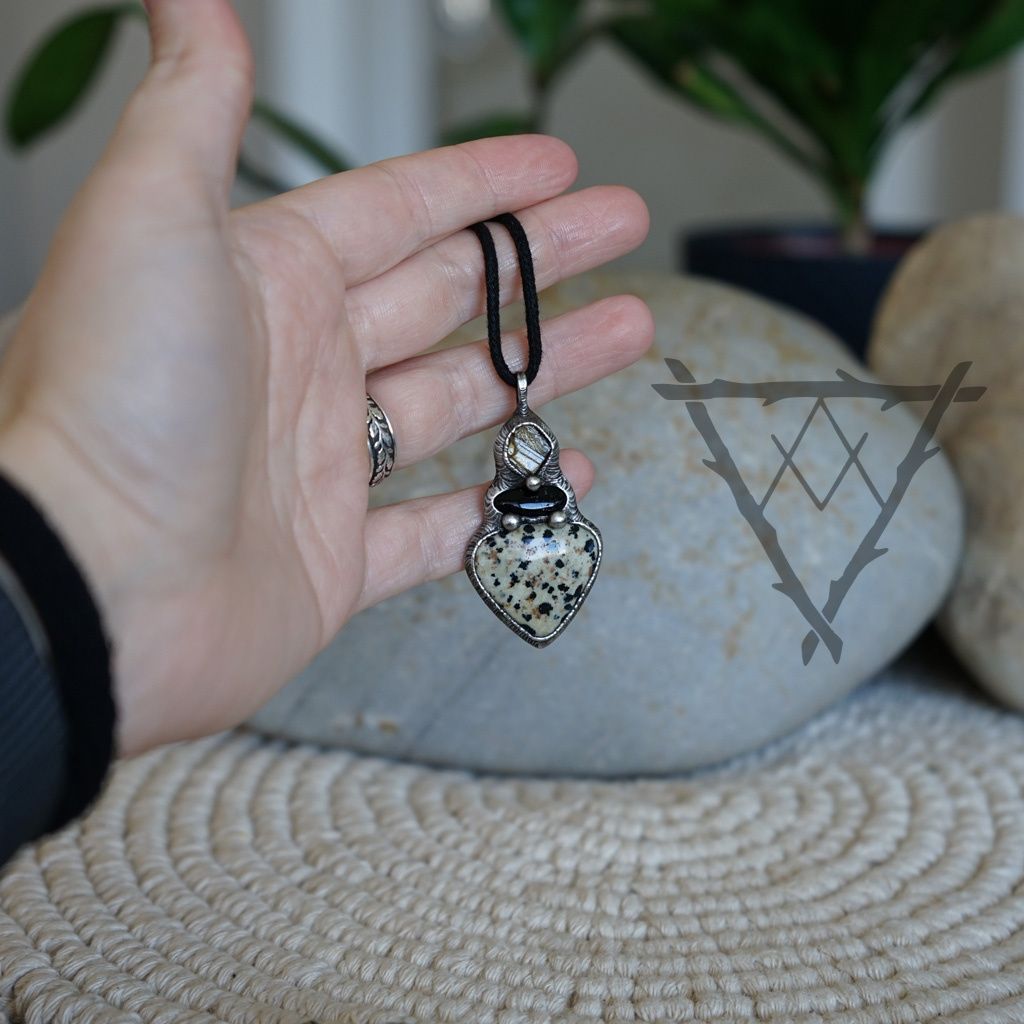 Přívěsek s Jaspisem dalmatin, Turmalínem a surovým Labradoritem.