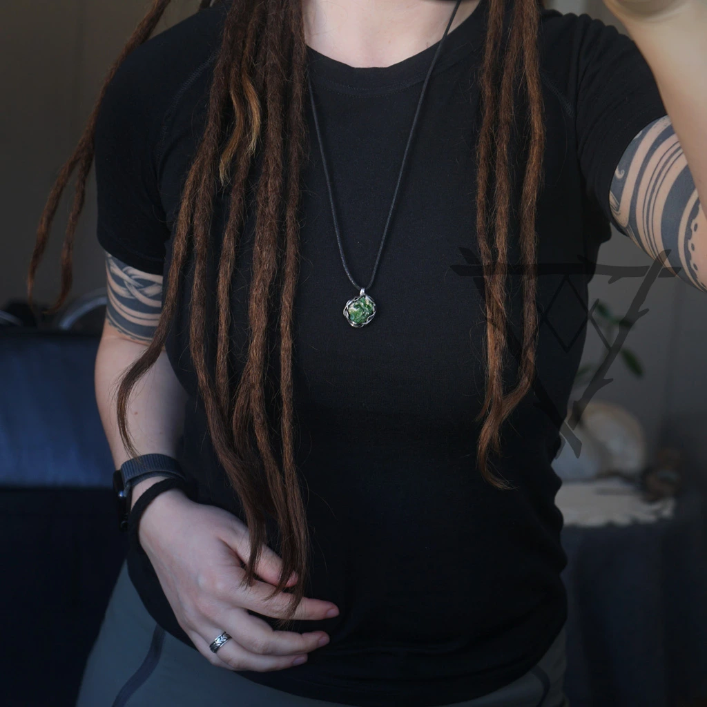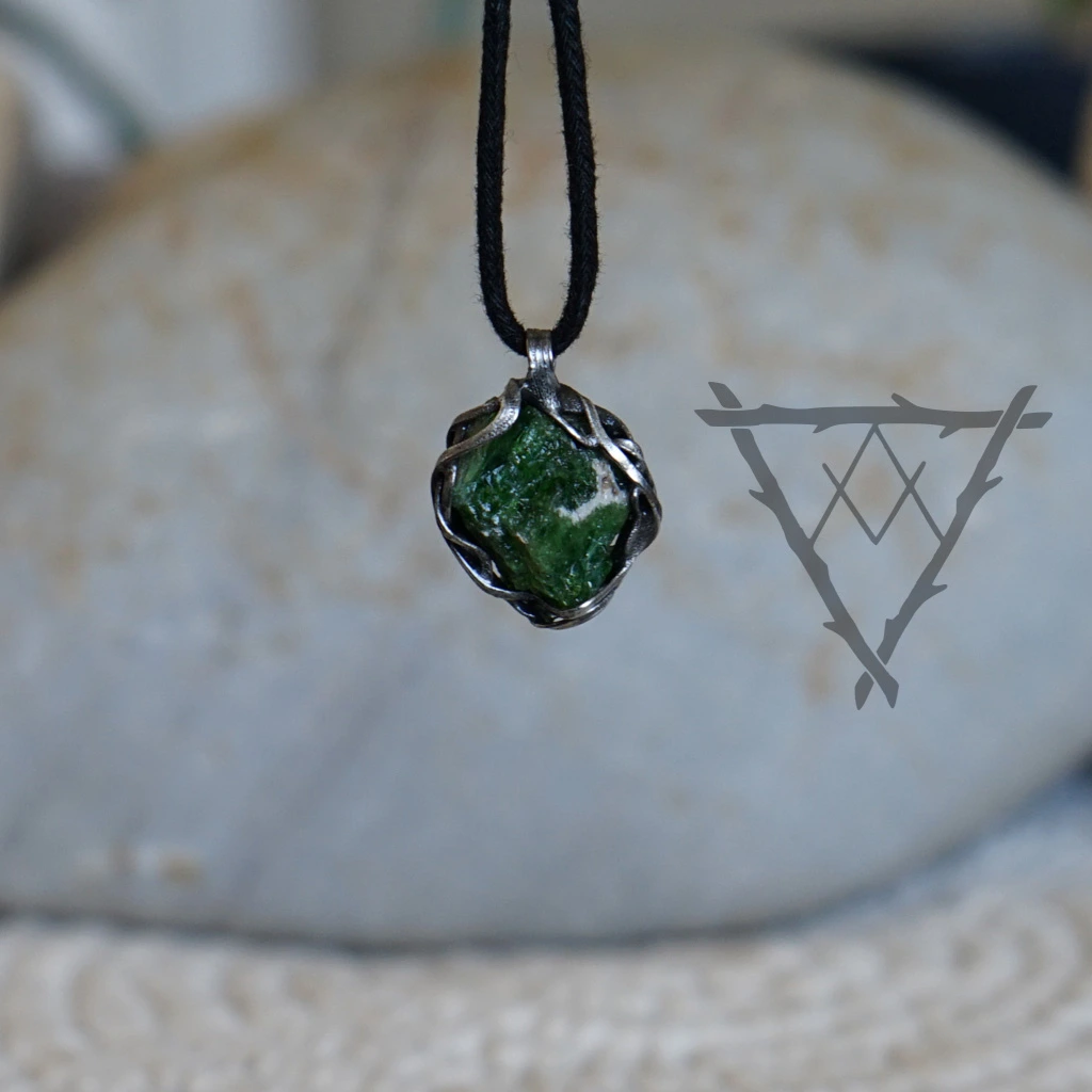 Přívěsek s krásným, surovým Chromdiopsidem.