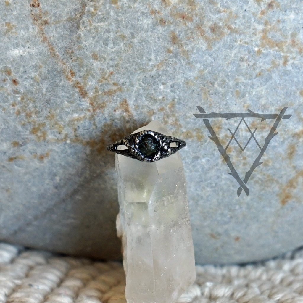Jemnější prsten se surovým zeleným Turmalínem.