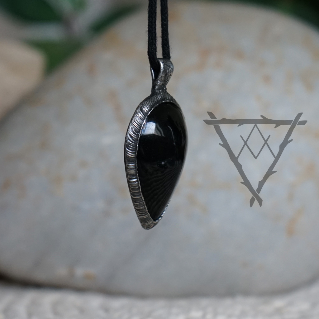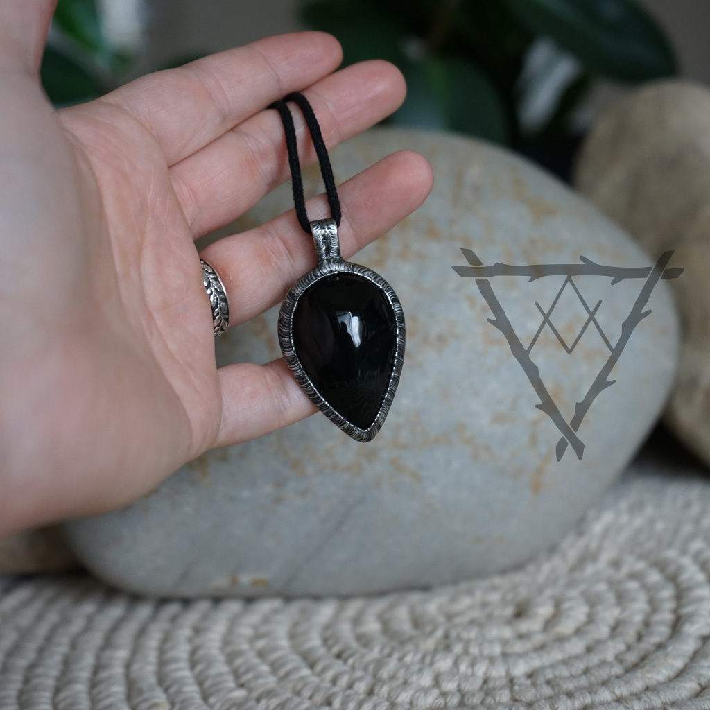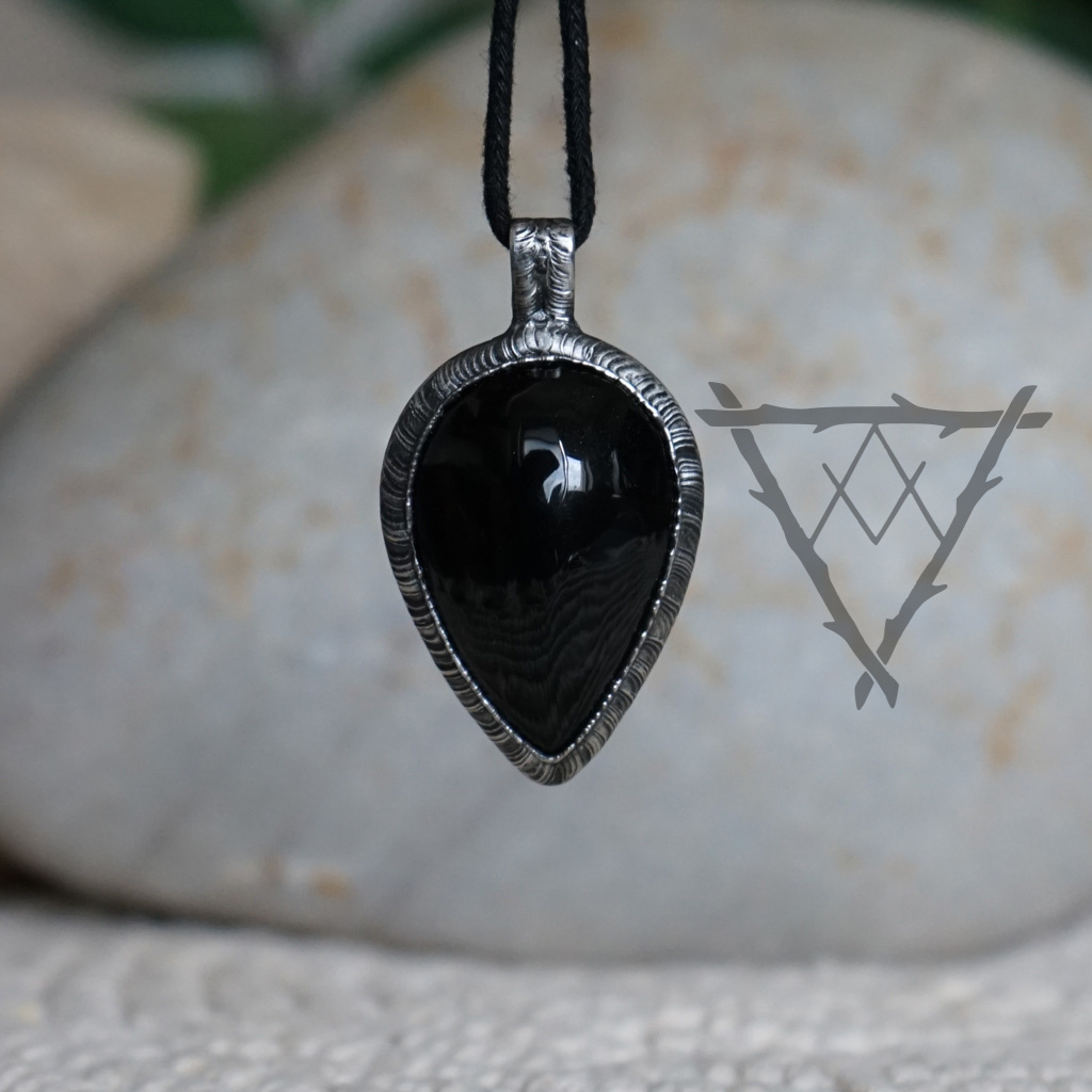 Tento temně černý kámen má v sobě jemné odlesky do stříbrna a fialova. Je to viditelné, když dopadne na kámen sluneční svit.