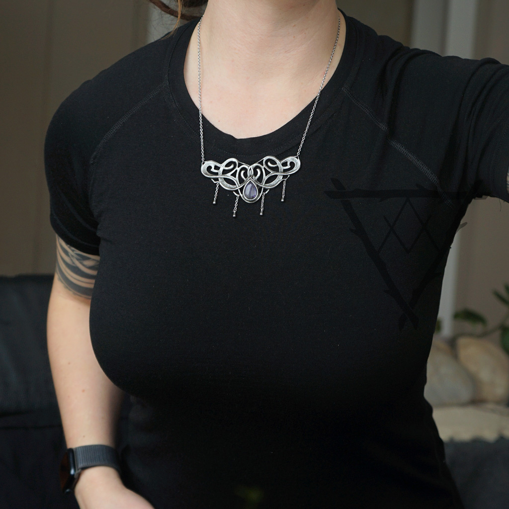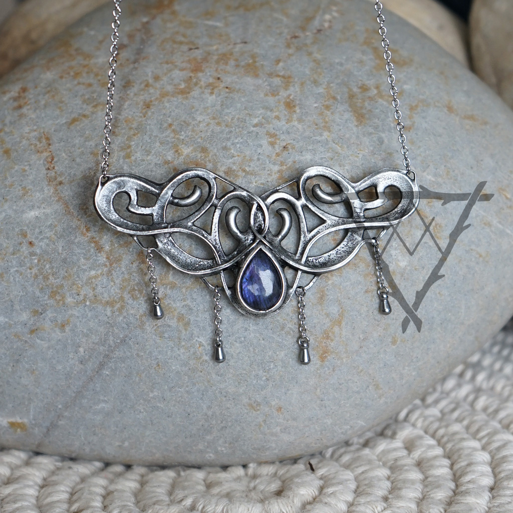 Náhrdelník s fialovým Labradoritem a řetízky.