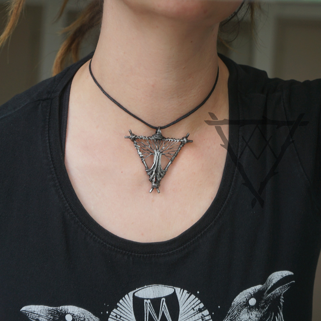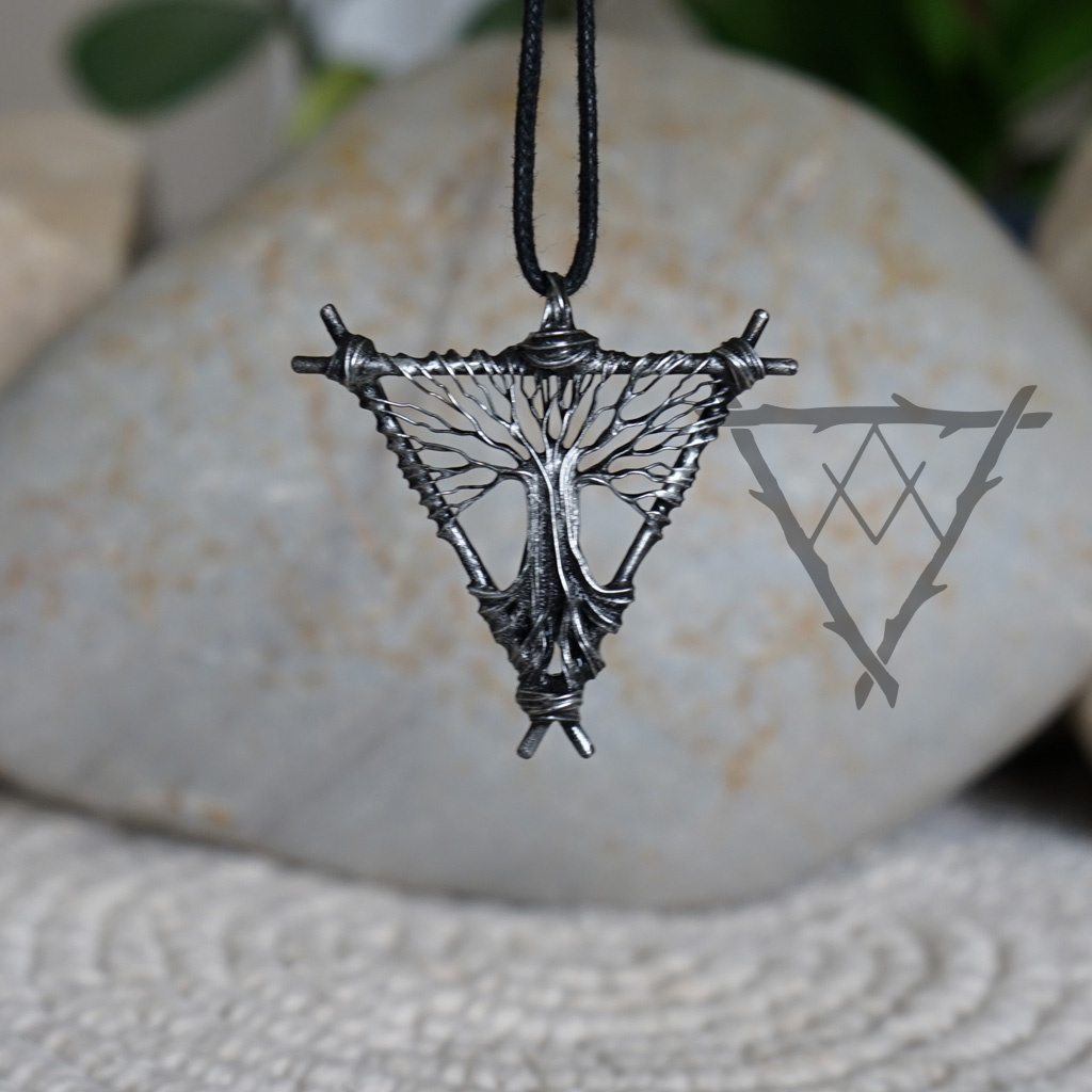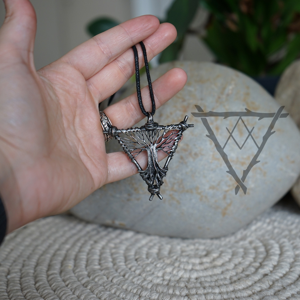 Yggdrasil, strom života, symbolizuje propojení všech světů, koloběh života a sílu růstu i obnovy. Trojúhelník obrácený hrotem dolů představuje ženský princip, intuici a hluboké spojení se zemí. Spojením obou vzniká talisman rovnováhy mezi nebem a kořeny – mezi duchovnem a hmotou.