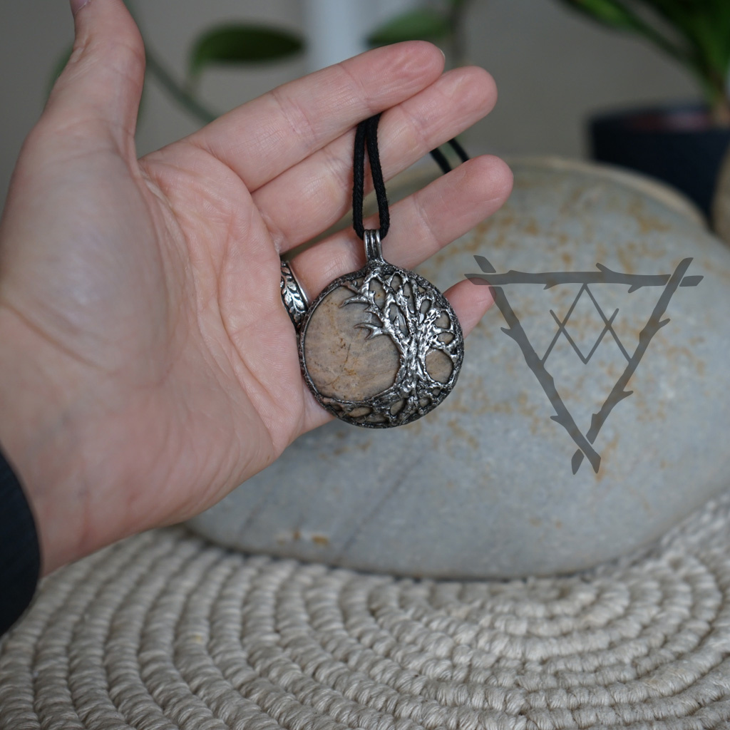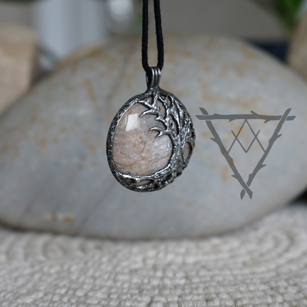 Spojení Yggdrasilu a aduláru propojuje sílu zakořenění s jemnou intuicí a duchovním vedením. Yggdrasil, strom života ze severské mytologie, symbolizuje propojení všech světů, stabilitu a neustálý růst. Připomíná nám pevné kořeny i schopnost rozvíjet se navzdory změnám. Adulár, známý jako měsíční kámen, je kamenem intuice, emocí a vnitřní rovnováhy. Jeho jemný lesk podporuje napojení na vlastní pocity a přirozenou moudrost. Kombinace těchto dvou symbolů vytváří harmonii mezi silou a citlivostí. Šperk s tímto spojením je ideální pro období životních změn i osobního rozvoje. Je to zároveň ochranný talisman i připomínka vlastní vnitřní stability a intuice.