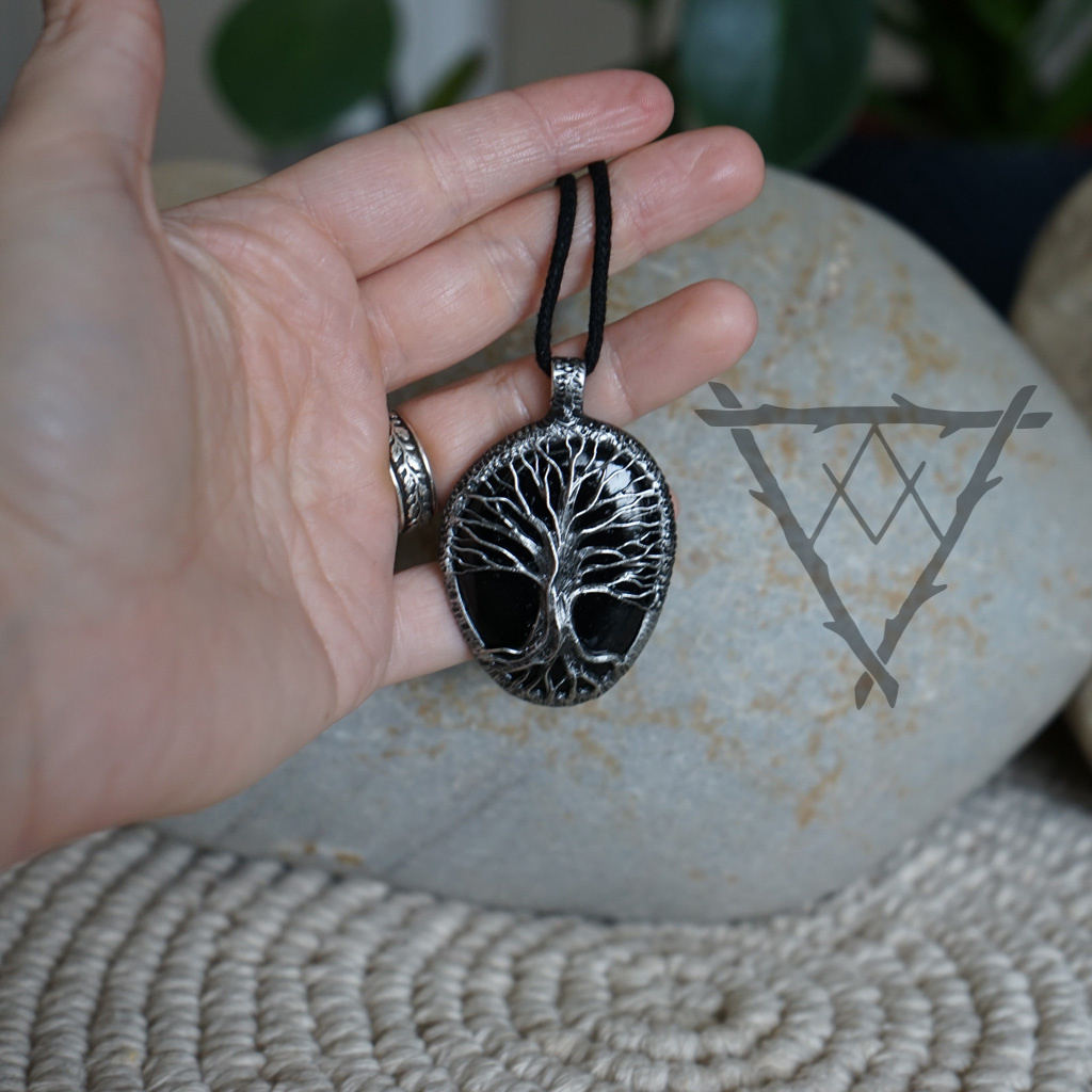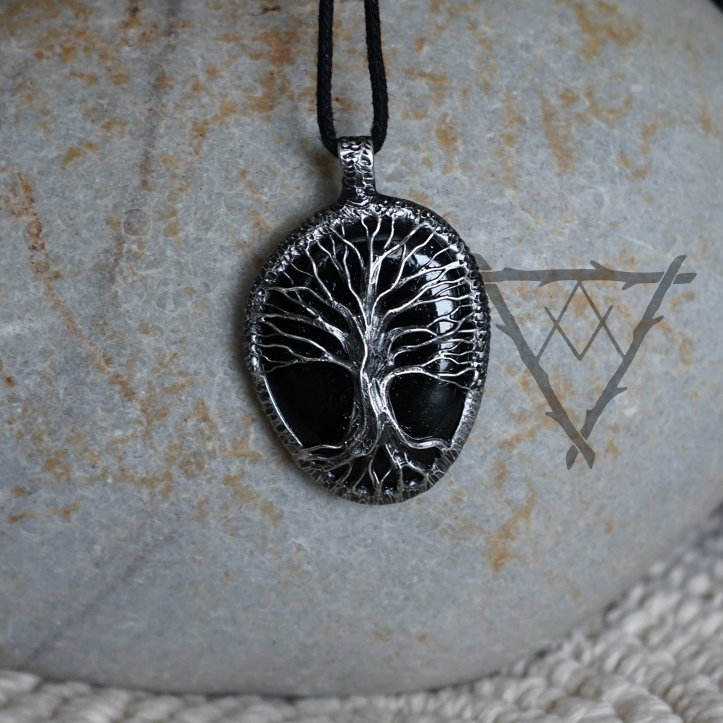 Přívěsek se stromem života a černým Gagátem.