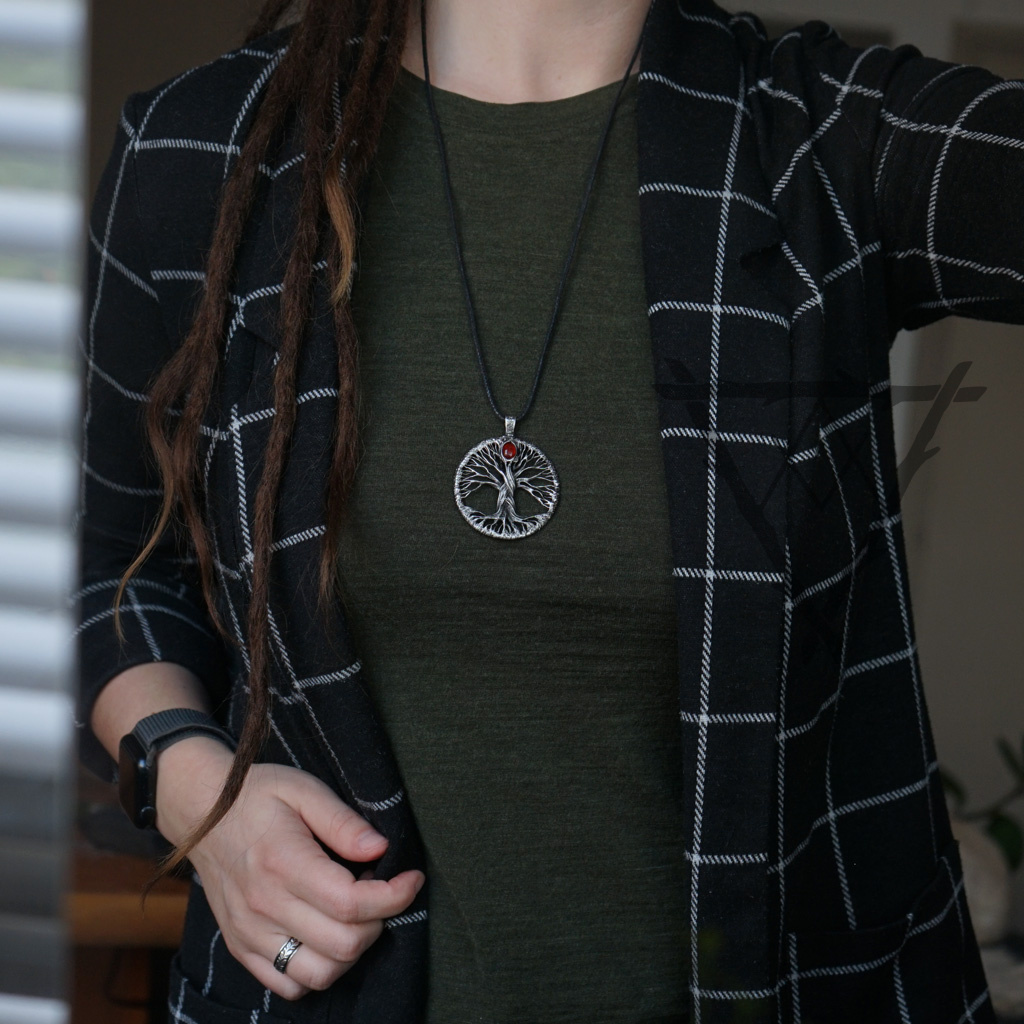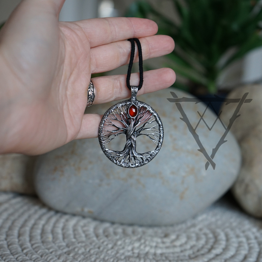 Zdobený přívěsek Yggdrasil s Granátem barvy krve.