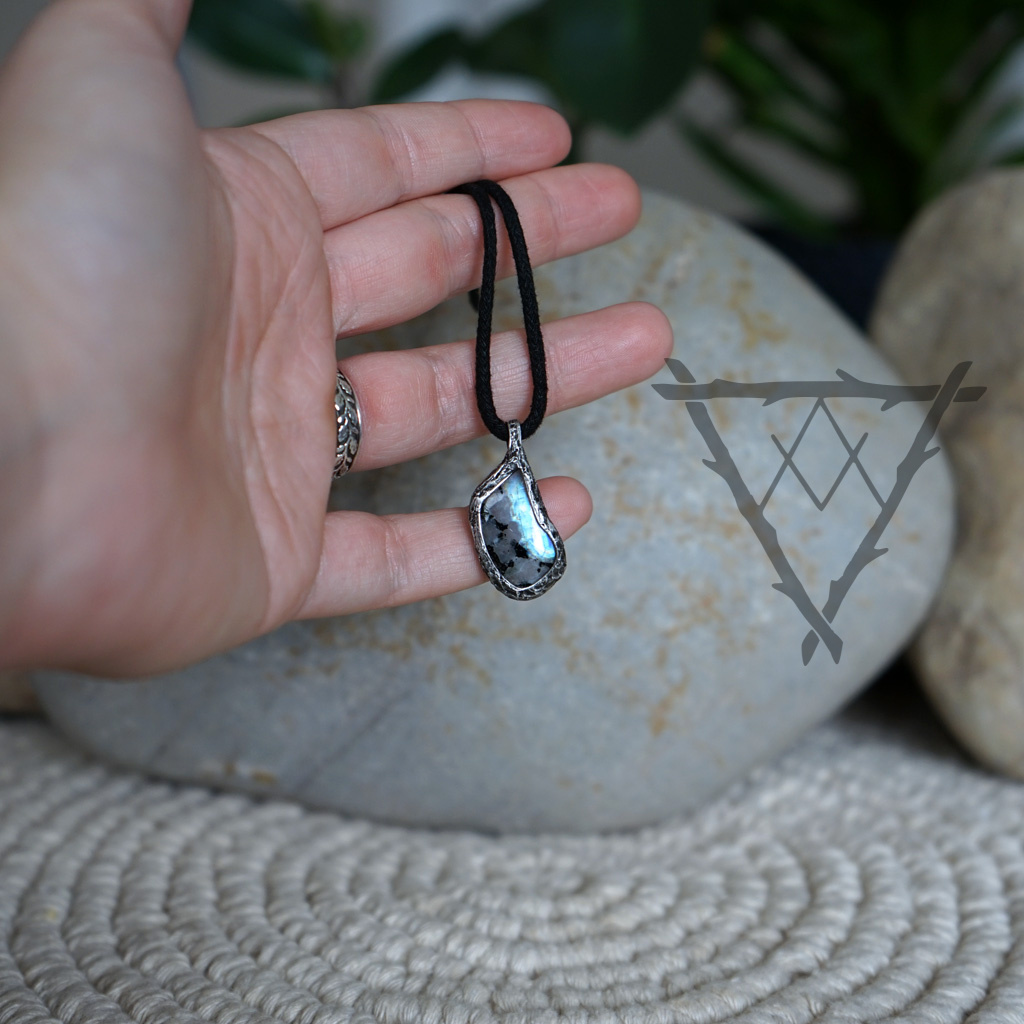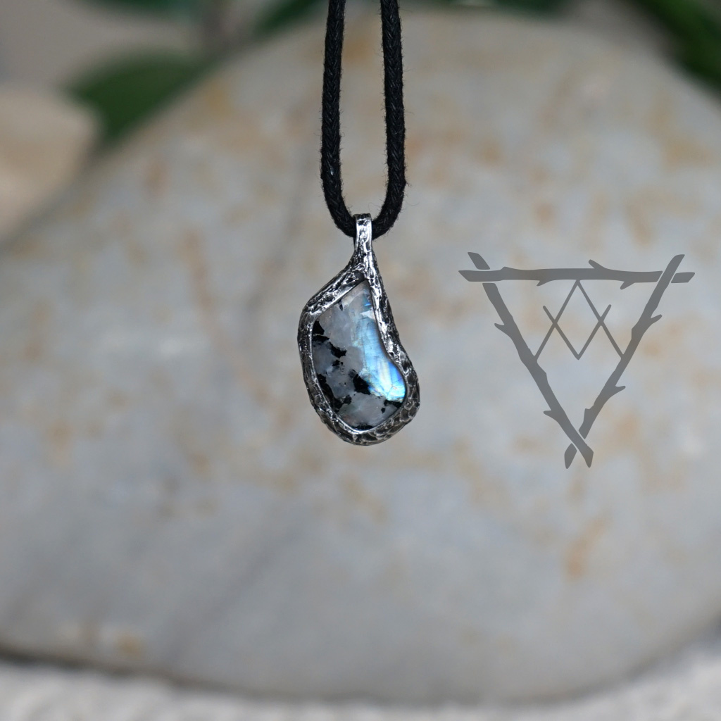 Měsíční kámen je sodno-draselný živec. Efekt měsíčního kamene- lesk je způsoben lomem světla na lamelárních a paralelních plochách uvnitř minerálu. Tvoří se typicky v pegmatitech a často je zde přítomný i další minerál z důvodu pomalého chladnutí a přítomnosti těkavých složek. Těží se po celém světě a známe ho už od starověku. Byl vždy považován za skvělý svatební dar. Měsíční kámen je kamenem nových počátků, spjat s měsícem, intuicí a vzpomínkami... kámen žen, kámen cyklu. Tiší rozbouřené emoce a pocity. Měsíční kámen vytahuje na povrch věci uzavřené v podvědomí, vyvolává srozumitelné sny. Lze jej nosit jako talisman dodávající odvahu a k přijímání duševních darů. Od nepaměti byl přítomen v podobě kamínku do ruky při porodu, pro jeho hladký průběh.